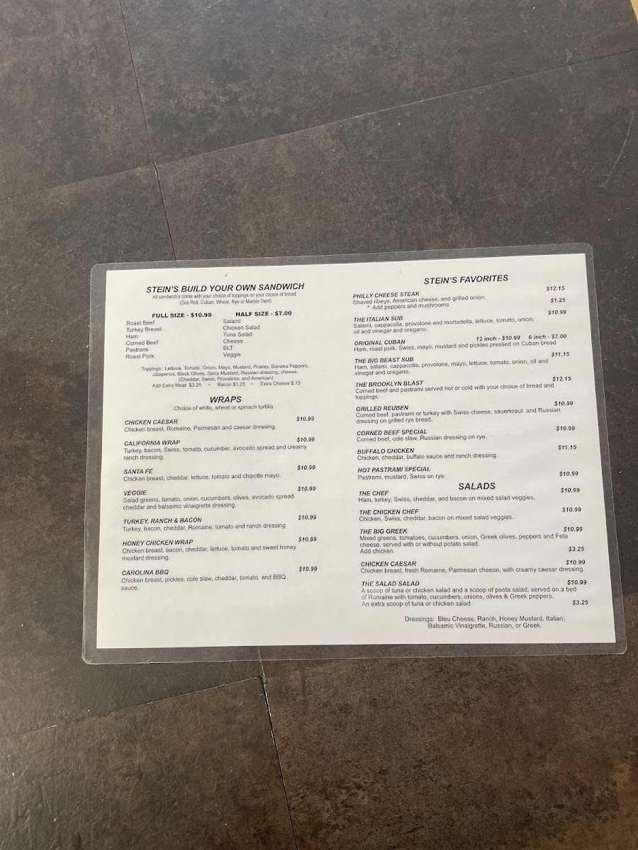 Big Steins Deli Menu