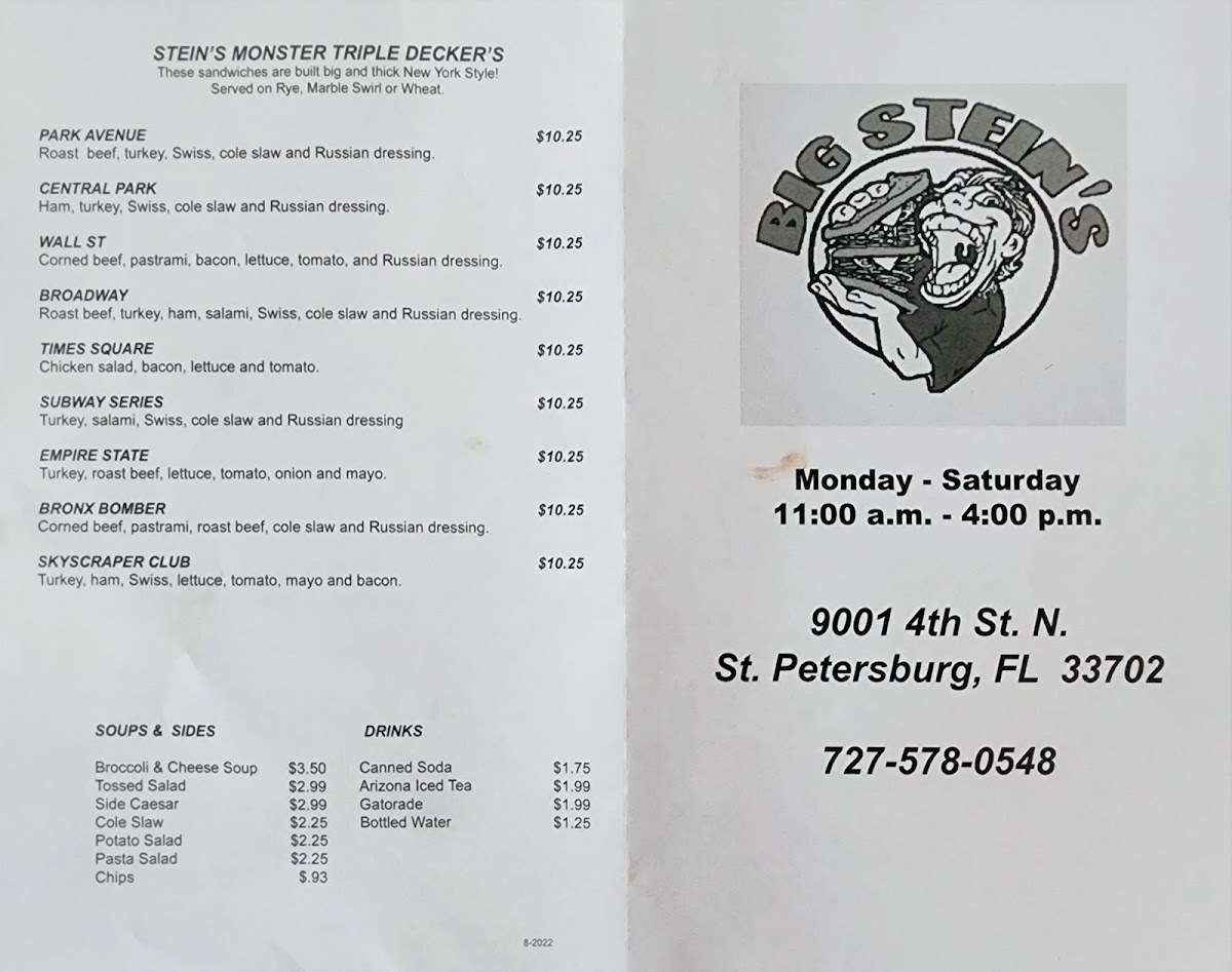 Welcome to Big Steins Deli, a hidden gem located at 9001 4th St N in St. Petersburg, FL. Known for its classic deli vibes and hearty offerings, this establishment specializes in colossal sandwiches that redefine casual dining.